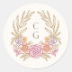 Floral Wreath Fall Monogram Crest Wedding Classic Round Sticker