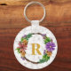 Floral Wreath Initial Letter Monogram Name Marble Key Ring