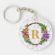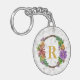 Floral Wreath Initial Letter Monogram Name Marble Key Ring