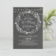 Such a cute and feminine rustic chalkboard wedding invitation with romantic floral wreath from little branches, hand drawn flowers and leaves. String lights chalkboard invite with hand drawn flowers perfect for your rustic vintage or modern wedding theme.