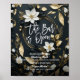 The Bar is Open / Signature Cocktail Drink Menu Wedding Decor Sign Poster Templates - Elegant Black White and Gold Floral Wreath.