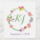 Wedding themed wine label done in white, with graphics of a colourful floral wreath with the bride and groom's monogram inside. Personalise with your initials and wedding date for your wedding reception.