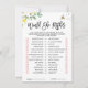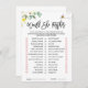 This bee themed would she rather game features a delicate floral arrangement, bee and heart flight path lines.