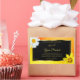 Make a lasting impression with this elegant and modern product label design featuring a cute daisy and coreopsis flower on a yellow and orange glitter frame with a shimmery fine gold decor and a black background.