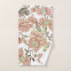 Beautiful towel set with a lovely backdrop of faded coral with faded pink blue florals and foliage.