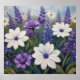 This whimsical poster features a cheerful and peaceful field of blue white purple flowers. Finished in an oil paint art print.
