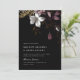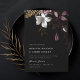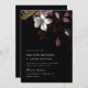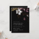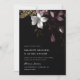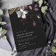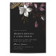 The invitation showcases a stunning black background that exudes sophistication and sets the stage for an unforgettable celebration. Adorned with an array of dark and moody florals flourishing with a captivating blend of deep purple, velvety purples, and earthy shades of brown. These captivating blooms, reminiscent of wildflowers found deep in the forest, bring a sense of drama and depth to the design.