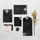 The invitation showcases a stunning black background that exudes sophistication and sets the stage for an unforgettable celebration. Adorned with an array of dark and moody florals flourishing with a captivating blend of deep purple, velvety purples, and earthy shades of brown. These captivating blooms, reminiscent of wildflowers found deep in the forest, bring a sense of drama and depth to the design.