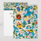 FLORENTINE RENAISSANCE BLUE FLORAL SWIRLS,FLOWERS HOLIDAY CARD