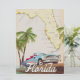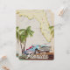 Beautiful illustrated map of the state of Florida and islands in the region in a beautiful vintage style featuring a retro 1950s car.
