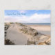 Florida beach scene postcard with photo taken at Ponce Inlet. The view is from the new boardwalk at Smyrna Dunes Park in New Smyrna Beach and shows the old boardwalk that used to lead to the beach. The printed text on the front can be changed or removed. Reverse is blank with an ocean water lapping the shore image.