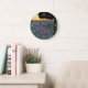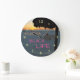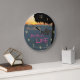 A beautiful sunset on a white sand Florida beach with a palm frond umbrella and a man sitting on a bench enjoying the view printed on wall clock. Perfect for those who dream of the Florida beach life! Photo taken on a beach on Marco Island, Florida. Original photography copyright 2005 and original design copyright 2018 by Karen Coffelt.