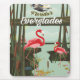 Florida Everglades cartoon travel poster featuring the landscape and flamingo birds.