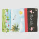 Floridian golf towel with a golf course on the ocean with palm trees and flamingos.