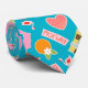 This is a bright, colourful, and fun necktie with images of the state of Florida. Images include a tropical drink, a coral pink heart, the outline of the state, text that says Florida and Sunshine State, a flower decorated orange fruit, a pastel coloured building, and, of course, a pink flamingo! Predominant colours are orange, pink, and teal, all placed on a turquoise blue background. *Clip art used in this design is copyrighted by Encore Software, Inc., which permits use to its licensors. All rights reserved.