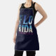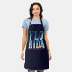 This trendy, elegant summer Apron of 2023, A design that contains the word Florida, with the effect of the sea, the sun, and trees, and is chraacterised by the blue colours of the sea and yellow sand, and underneath it is the word Miami Beach in fuchsia