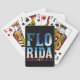 This trendy, elegant summer Playing Cards of 2023, A design that contains the word Florida, with the effect of the sea, the sun, and trees, and is chraacterised by the blue colours of the sea and yellow sand, and underneath it is the word Miami Beach in fuchsia