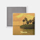 A group of palm trees on a spit of land jutting out into a Florida waterway. They tower over a bramble of vegetation and stand in near silhouette against a sky filled with saffron hues that reflect on the surface of the river. Based on a scene near Cape Canaveral.