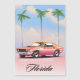 Florida Pink Sunset travel poster featuring a retro american muscle car against an evening sunset.