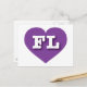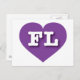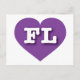 This postcard features a vibrant purple heart containing the bold, white, upper case letters FL, the official abbreviation for Florida, the sunshine state. The reverse side of the postcard is blank, awaiting your handwritten sentiments or customised text.
