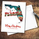 Bring a touch of Florida sunshine to your holiday greetings with this custom Christmas postcard. The design features the Florida state outline accented with festive details — twinkling lights, a cheerful Santa hat, a tropical palm, and a flamingo by the shore at sunset. Add your own holiday message and family name to the front, while the back provides room for a handwritten note. A delightful way to send Christmas wishes from the Sunshine State, ideal for locals, vacationers, or anyone who dreams of a warm coastal holiday.
