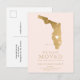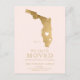 send your new address to friends and family with this modern pastel blush pink and gold foil map of the state of Florida with modern typography. Perfect moving announcement. Move the heart around to your location.