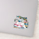 Iconic Florida state shape outline map filled with tropical pink flamingos, orange grove scenes, and coastal beach scenery on kiss cut vinyl stickers to slap on all your favourite gear, from notebooks and phones to skateboards and even cars Available in multiple sizes to suit all your needs.