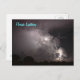 Photograph of gorgeous lightning and puffy storm clouds at night, displayed on a Postcard. I sweat my butt-off and risk my health to get these storm and lightning photographs :)