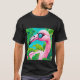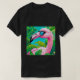 I give wanted to give this a 4 instead of a 5 because these Basic DARK T0shirts run unexpectedly SLIM or Narrow. Which is great if you do not have a potbelly, but I have a paunch. It isn't the shirt's fault that I've got a beer belly. The design and shirt itself is a quality cotton shirt. The color is more of a deep purple, but still a very pretty color. The Basic DARK T-shirts run a bit SLIMMER than the Basic Ts. The neck is a fraction narrower (or seems to be narrower) also. I'm a paunchy middle-aged woman and my neck is 12 inches (31cm) thick and the neckline fell about the same as in the photo of the man, and I had the desire to tug it a bit. So if you're a thick necked man or like loose shirts, be aware these are slimmer shirts. Once I get rid of my lockdown paunch it'll look great. The shirt washed well in cold water with no apparent bleeding. We don't have a dryer, so it hung dry. Did not shrink. Love the colors and the design. The design looks smaller on my shirt than it does on the model on-line. But still, it looks good on the shirt. The printing looks as it does on the model, just the size seems fractionally smaller. Washed garment in cold water, hung dry and design appeared unaffected.