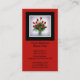 Rose bouquet florist business cards show black framed photo of a dozen red roses bouquet on the front against a coordinating rose red background. Blank back is coordinating black. Personalise these classic but elegant vertical business cards however you wish. Floral roses business cards for florists, wedding planners, wedding photographers, event planners, and similar consumer service businesses.
