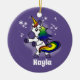 Flossing Rainbow Unicorn with Starry Background Ceramic Tree Decoration