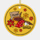 This funny ornament is sure to delight anyone who loves to bake. Featuring a play on words, the text says FLOUR CHILD with flour sack, bowl of batter, oven mitt, eggs, a rolling pin and flowers. Great gift for your favourite baker! Customisable background colour. Also available on T-shirts, apparel, tote bags, mugs, coasters, keepsakes and more! PinkInkArt original!