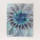 Flourish Abstract Modern Fractal Flower With Blue Jigsaw Puzzle