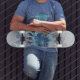 Flourish Abstract Modern Fractal Flower With Blue Skateboard
