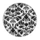 Vintage inspired damask art large surface pattern design in black leaf and flourish detail on a white background.