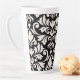Vintage influenced damask art large surface pattern design in cream colour detail on a black background.