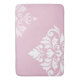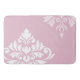 Vintage inspired damask art design in white and light pink leaf and flourish detail on a pink background.