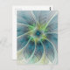Flourish Fantasy Modern Blue Green Fractal Flower Postcard