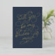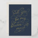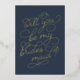Ask your best girls to stand with you with these beautiful cards. Design features "will you be my bridesmaid" in embellished gold foil script typography with a subtle heart worked into the design, on a navy blue background. Add a custom personalised message to the back in modern handwritten script and classic serif lettering.