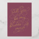 Ask your best girls to stand with you with these beautiful cards. Design features "will you be my bridesmaid" in embellished gold foil script typography with a subtle heart worked into the design, on a plum berry background. Add a custom personalized message to the back in modern handwritten script and classic serif lettering.