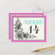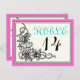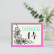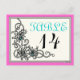 Flourish vine black pink turquoise wedding table number postcard, featuring a black vine with flowers with turquoise blue centre, a double black and hot pink border and an elegant formal script font on ivory/ecru background. A contemporary, floral design with a touch of vintage, perfect for a modern or traditional spring or summer wedding. This stylish design can be used for other special occasions such as birthdays, engagements or anniversaries.
