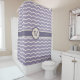 Enjoy a fun zigzag pattern with a pretty flourish as the beige zigzag curves up and down to points in a shape inspired by lotus petals. This flourished zigzag sits on top of a pleasant lilac background for a soothing contrast. Customise the initial on this shower curtain to create a personalised decoration for your bathroom.