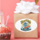 Flow With The Happy Waves Waterproof Sticker adds a splash of joy to your surfaces! This high-quality vinyl sticker features a cartoon wave character surfing happily with a sunny backdrop in retro colours.