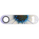 This bottle opener has a cool picture of a flower on it.