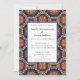 Wedding invitation with a repeating pattern of decorative elements in flower, star and sun shapes.