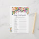 Our colourful flower baby shower word scramble game cards with a white background has 20 words scrambled and all the words are associated with babies. You can have the guests casually play this game (just quickly edit the directions yourself) or you can make it a competition by giving the guests a certain amount of time to complete the game and give a prize to whoever gets finished first.