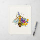 Artistically drawn, flower, honey bee with contrasting colors, yellow, bright, blooming california poppy and blue wild plants on white background.