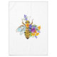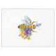 Artistically drawn, flower, honey bee with contrasting colors, yellow, bright, blooming california poppy and blue wild plants on white background.