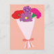 A vector art of a flower bouquet compose of carnation, poppy, geraniums and daisy flowers.