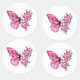 Flower arrangement of pink butterfly with pink Japanese cherry blossoms on white background.